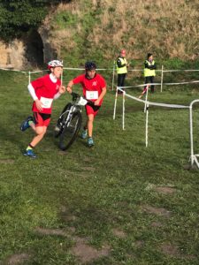 Mon coéquipier est parti en course à pied et moi en VTT.