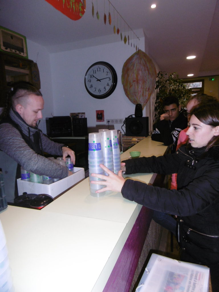 Il nous a prêté les écocups du centre social pour la soupe coopérative.
