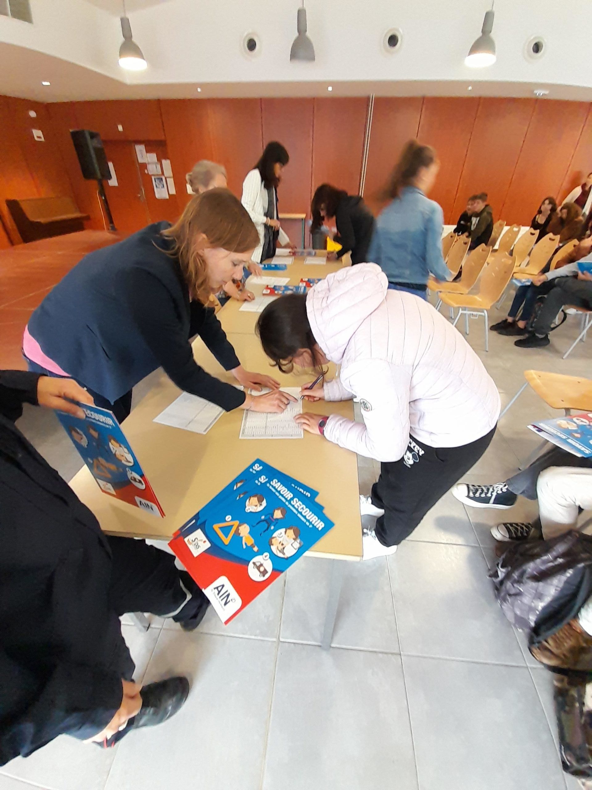 Bonjour, le jeudi j’ai passé mon PSC1 avec les pompiers d’Hauteville. Nous sommes arrivés à 8h30. Nous avons appris à faire des massages cardiaques et ensuite j’ai appris à faire des garrots.