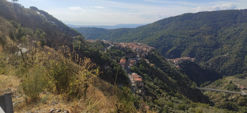 Après la région des Pouilles, il a traversé celle de la Calabre avec son vélo. C’est en fait le « pied » de l’Italie. Il a choisi la route du centre, dans les montagnes, plutôt que la route du bord de mer. Il avait déjà bien profité des plages et des baignades les semaines précédentes. En Calabre, il a roulé sur des routes avec de grosses montées, il a vu des grandes forêts et des lacs. Les calabrais sont des gens très accueillants. Ils habitent dans des villages qui paraissent accrochés aux montagnes, ils sont très en pente!