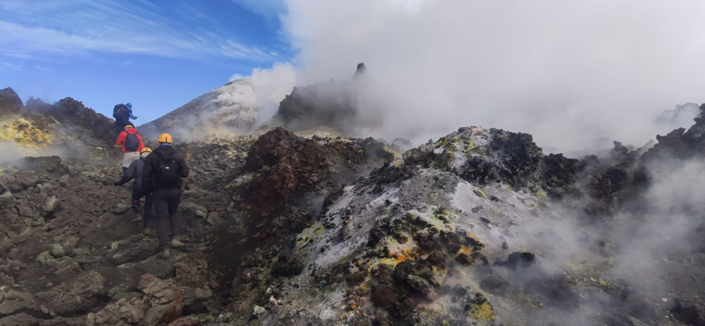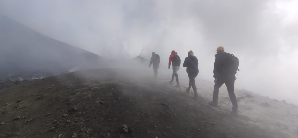 Pour grimper au sommet du volcan, il a dû poser son vélo et s’inscrire dans un groupe avec un guide. Il est interdit de s’aventurer seul sur un volcan en activité.