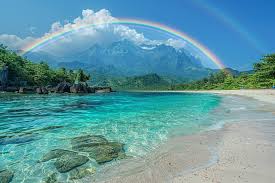 Face à moi, il y a un magnifique arc en ciel qui se trouve caché dans les montagnes.