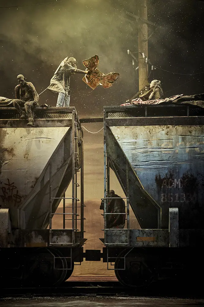De la même manière, des hommes, des femmes et des enfants, des migrants, traversent l’Amérique pour une vie meilleure. Ils empruntent un énorme train de marchandises. Ils grimpent sur le toit des wagons pour passer les frontières de manière clandestine.