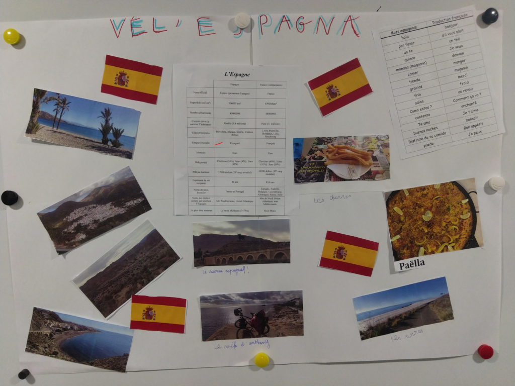 Pour cette dernière semaine espagnole, nous avons fait un petit panneau pour afficher dans le couloir de l’école.