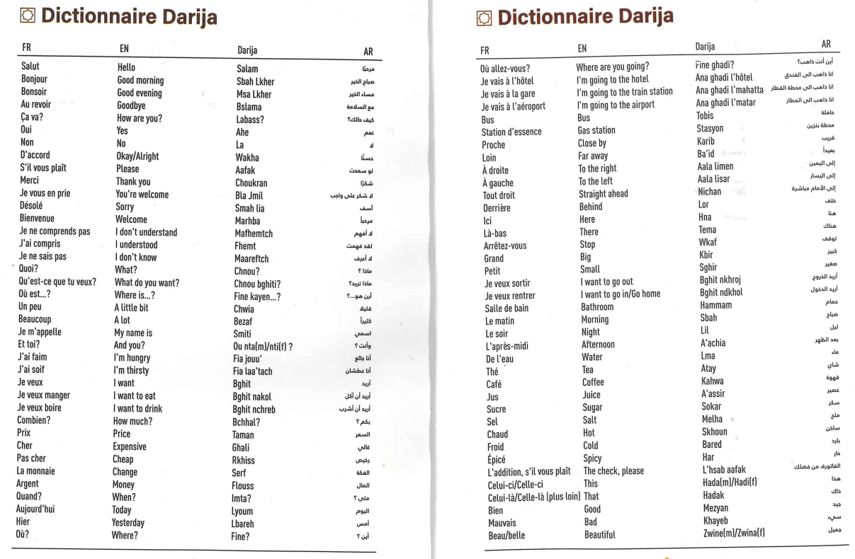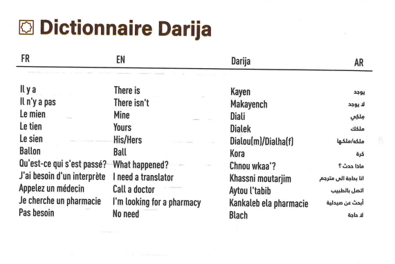 Nous n’avons pas trouvé de site comme Duolingo qui permette de l’apprendre. Anthony nous a conseillé un site: traductordarija.com/fr