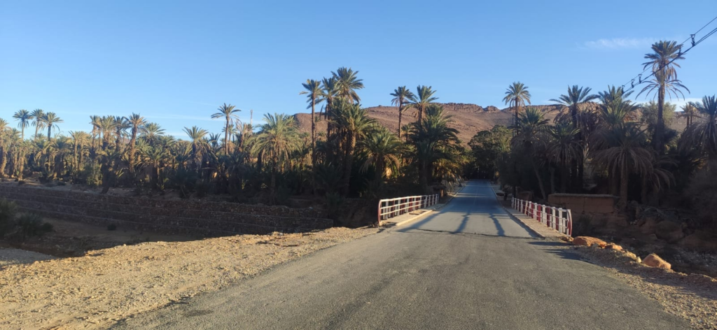 Les villes qu’il traverse sont des oasis, des endroits où il y a des palmeraies (« forêt de palmiers »). Ces arbres sont surtout des dattiers qui permettent d’avoir des dattes (fruits). Les dattiers font parti de la famille des palmiers (comme les cocotiers dans d’autres pays!).
