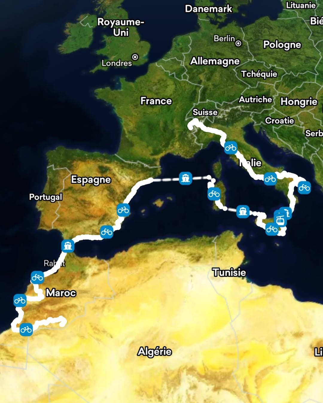 – Comment as-tu pu arriver à temps pour la traversée du Détroit de Gibraltar, sachant que tu es à vélo? (Ilyes)