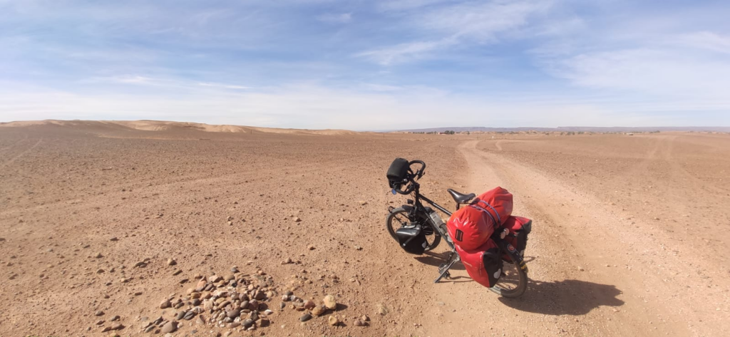 Par exemple, je me réveille à 8h, petit déjeuner, rangement de la tente, puis je roule à vélo de 10h (il fait froid avant) jusqu’à 15, 16 ou 17h.