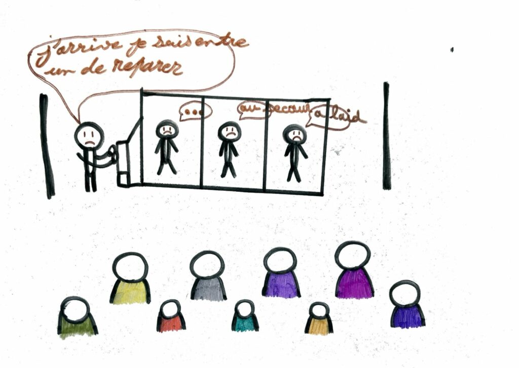 Aujourd’hui, nous avons joué la scène suivante: « Trois personnes sont coincées dans un ascenseur depuis plus de cinq heures. Le réparateur nous contacte via l’interphone: que lui dites-vous? »