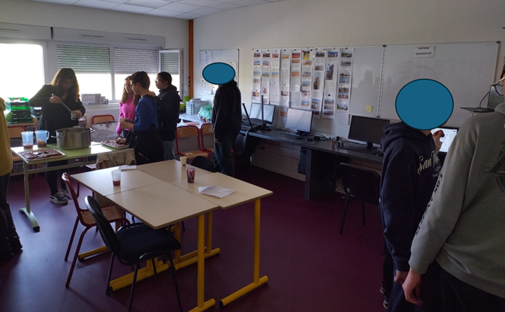 Pour l’accueil de tous nos invités (tous les élèves et les adultes de l’IME, soit environ 90 personnes), nous avions préparé une sangria (sans alcool!) et un gâteau au chocolat (un Browkie!) préparé par l’atelier Cuisine de l’IME. Merci l’atelier Cuisine!