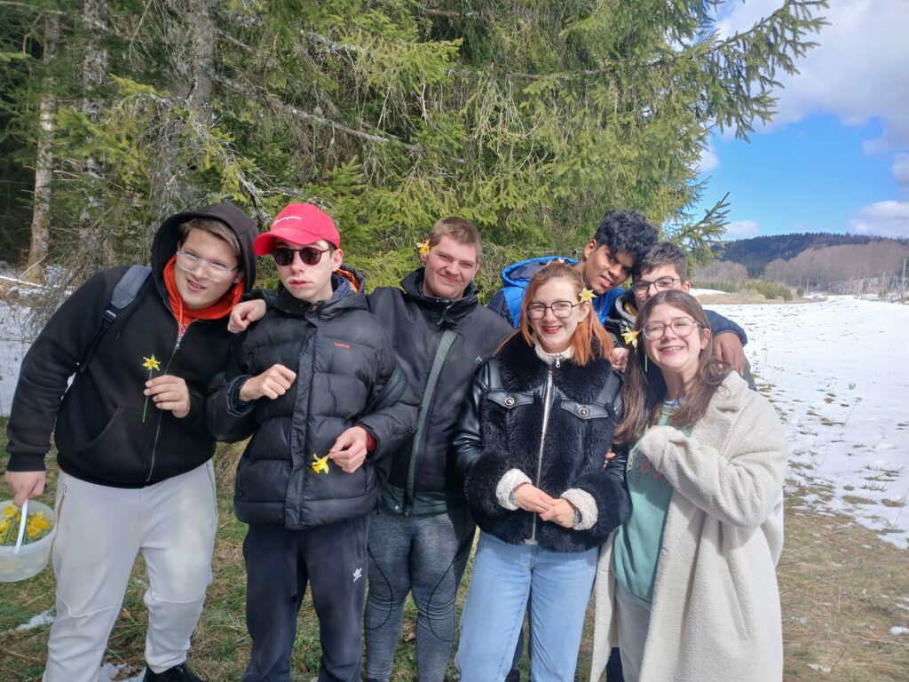 ce mercredi , avec le groupe det2, nous sommes allés ramasser des jonquilles dans la combe de léchaud! une vraie aventure car il y avait encore de la neige. Nous en avons trouvé quelques unes . » c’était bien, j’ai découvert un joli coin! » (Louna)
