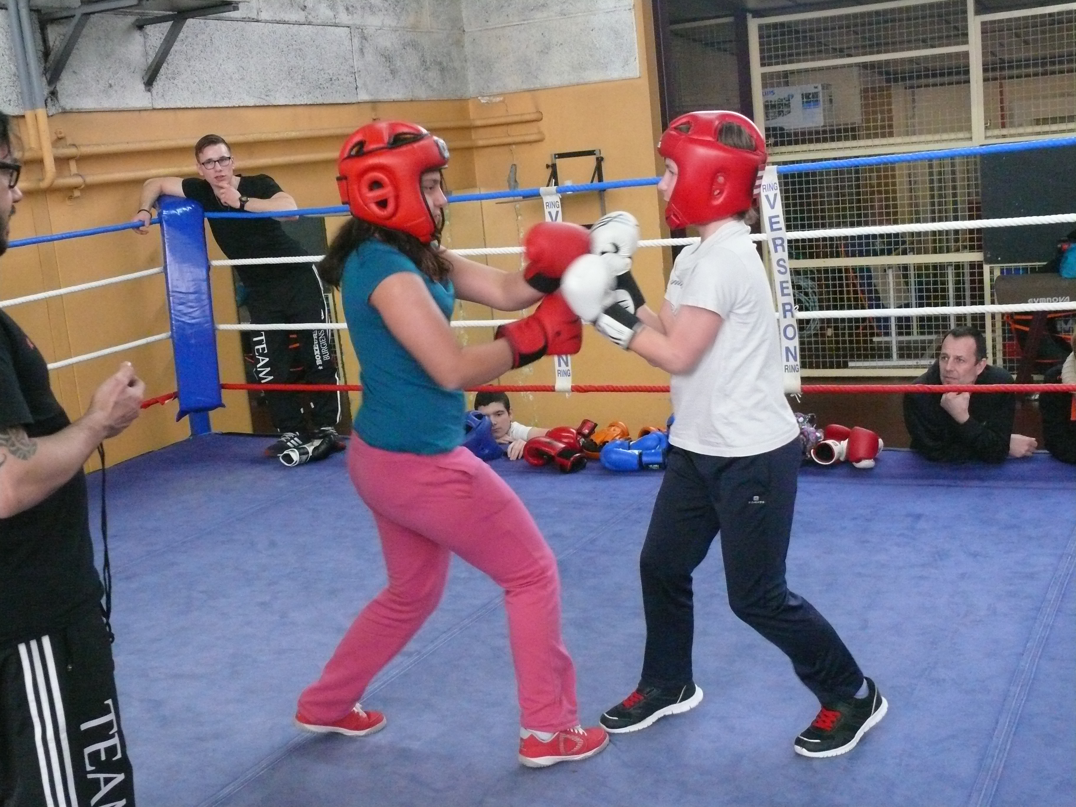 On a appris les règles de la boxe par groupe de 3 ou 5 avec un entraîneur du club de boxe de Bourg : ne pas taper dans le visage, ne pas se retourner et taper dans le dos, ne pas taper en dessous de la ceinture.